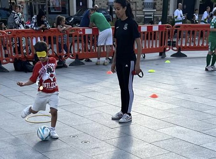 Demba, athlète cécifoot était présent et a pu échanger avec la maire de la ville et faire une démonstration de ce sport.