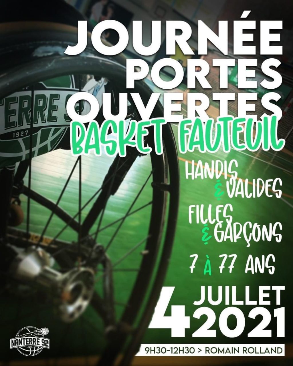 Le club de Basket-ball professionnel de Nanterre ProA a ouvert une section Handibasket: le club Jeunesse Sportive des Fontenelles de Nanterre. Le club organise une journée portes ouvertes pour la pratique du basket fauteuil ce dimanche 4 Juillet 2021 de 9 h 30 à 12 h 30 au Gymnase Romain Rolland, 92000 Nanterre.