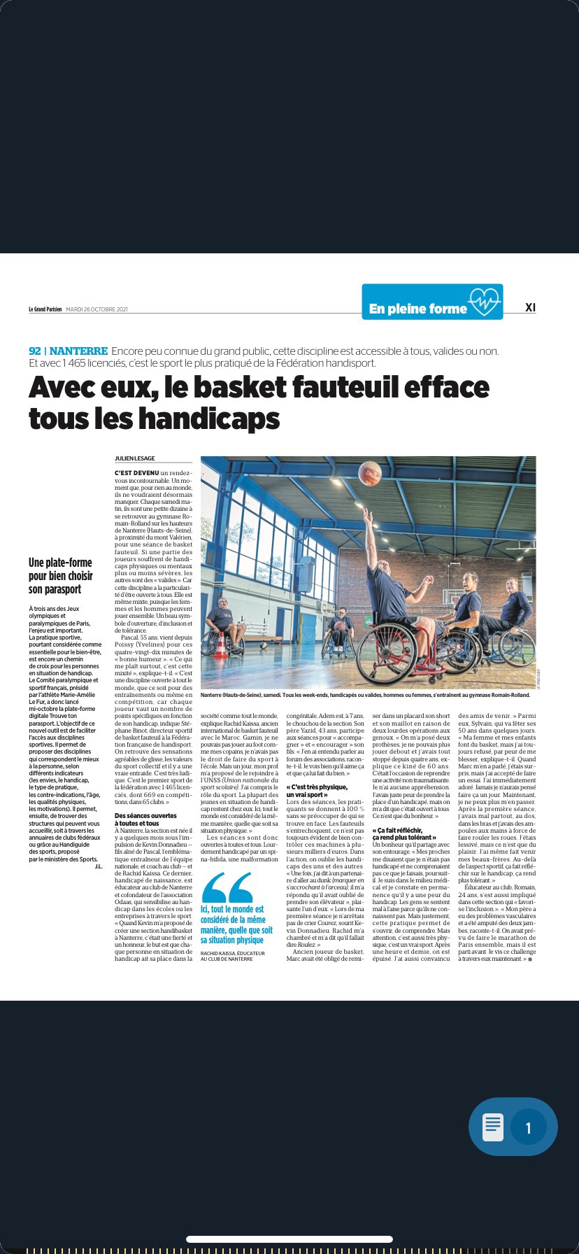 Le club la jeunesse sportive des fontenelles de Nanterre ont créé leur section basket-fauteuil ouvert à tous, avec des personnes en situation de handicaps physiques ou mentaux et des personnes valides.